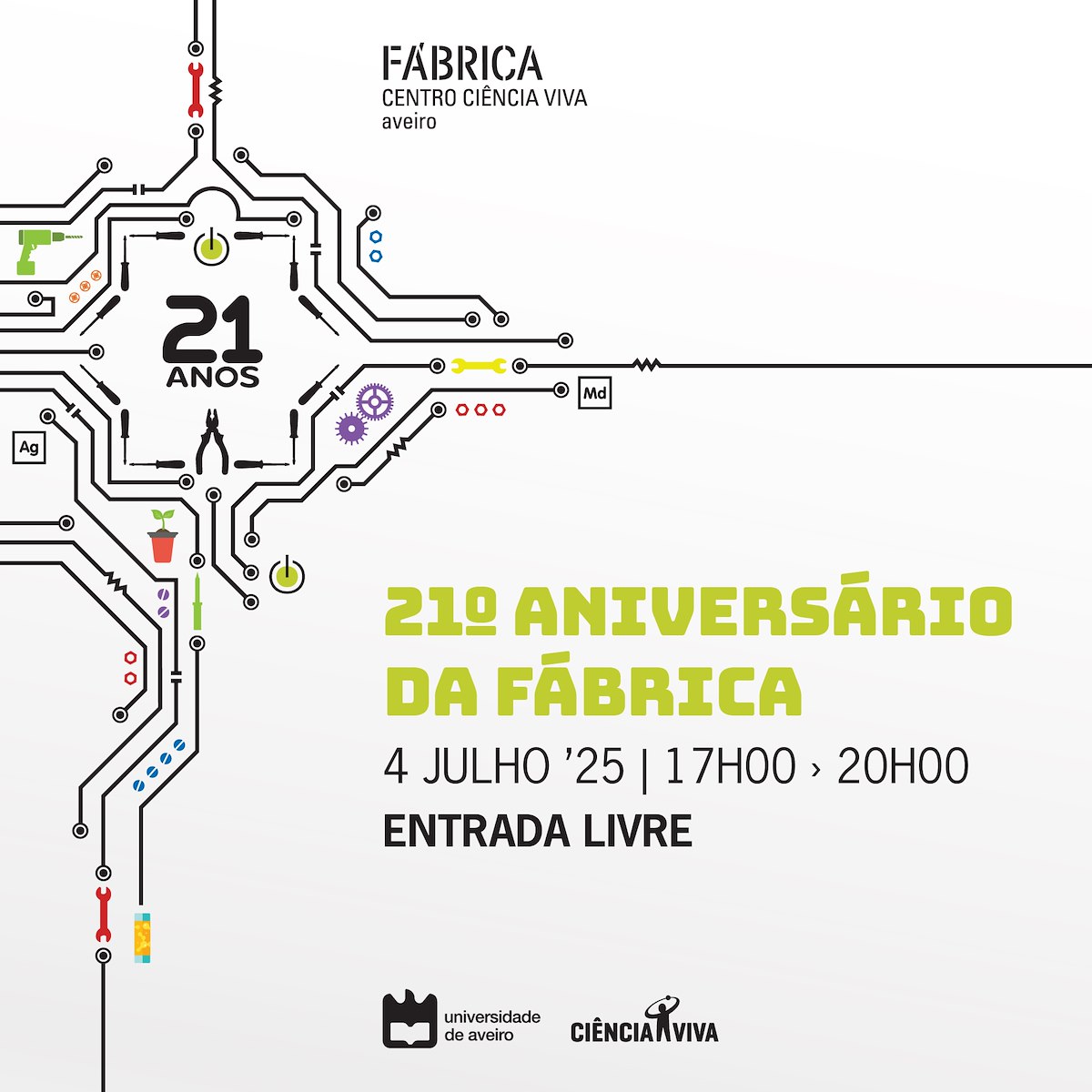 A Fábrica celebra 21 anos ao serviço da cultura científica e tecnológica, e convida toda a comunidade a juntar-se a esta comemoração. O programa, pensado para todas as idades, promete muita animação, experiências interativas e momentos de celebração em família.
