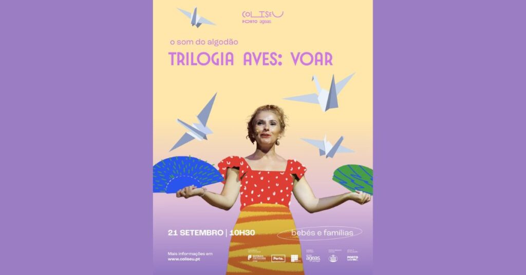 Para a rentrée cultural, a 21 de setembro, fica reservado o espetáculo da Trilogia AVES – VoAr. Para bebés e famílias“. Bebés e crianças são convidados a imaginar que estão de asas abertas. Será que sentem o vento na cara e a liberdade infinita? Voar entre embalos nos braços dos pais. Voar ao som das palavras. As aves voam para ir, voam para sentir, voam em liberdade, em bando. Mas também voam na hora de regressar. Uma viagem que é também liberdade para regresso. E recomeçar.