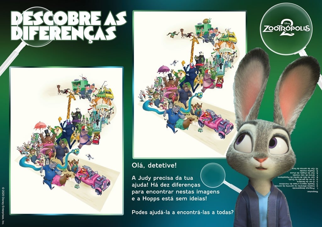 Podem descarregar o Descobre as Diferenças de ZOOTROPOLIS 2 para imprimir.