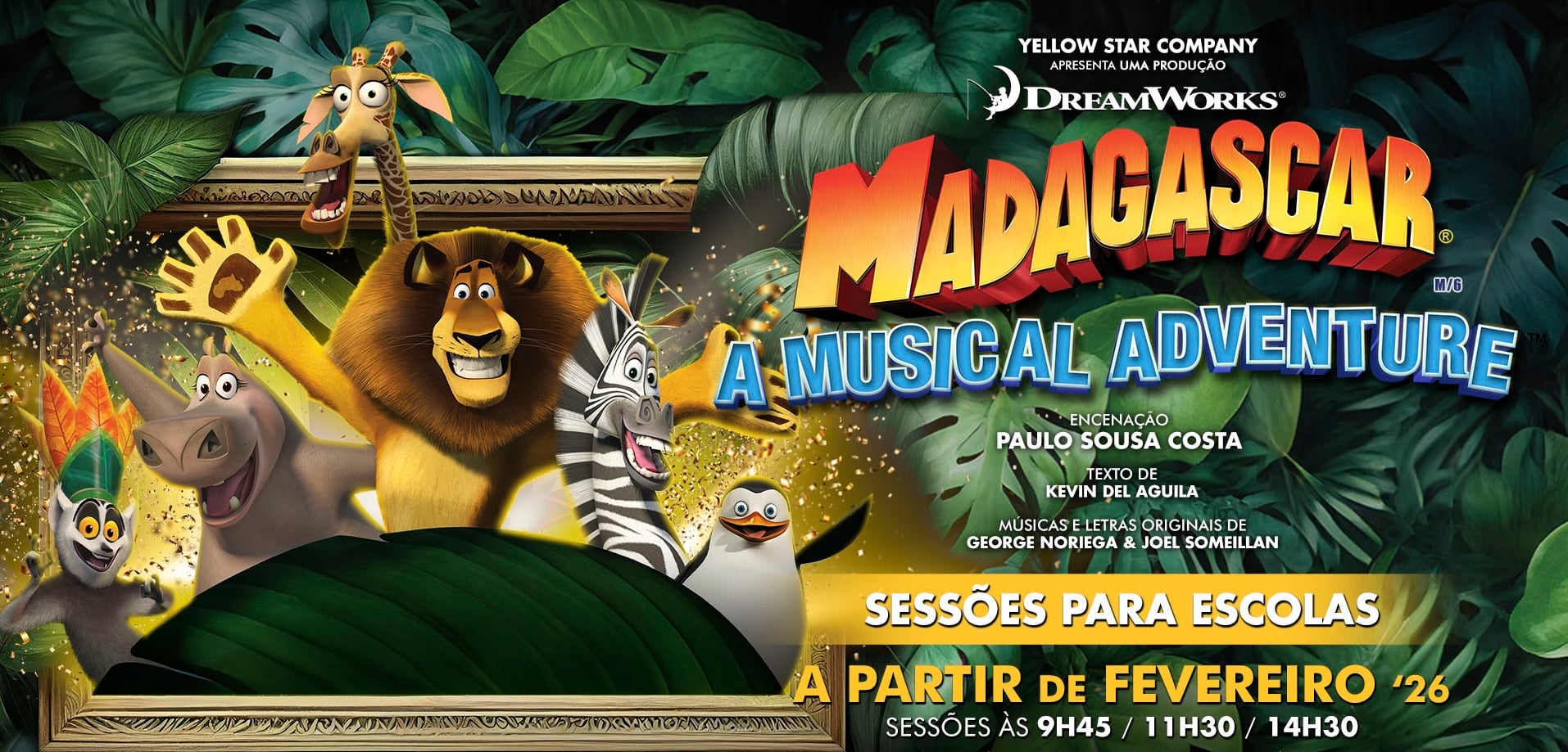 O musical Madagáscar tem sessões para escolas durante a semana, com sessões às: