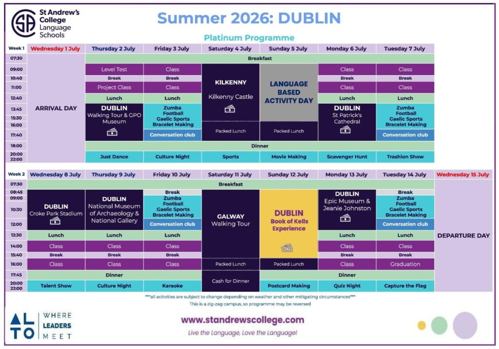 O curso decorre de 29 de Julho a 12 de Agosto de 2026 durante duas semanas, e é uma parceria com St Andrew’s College Language Schools, acreditada pelo British Council e com mais de 20 anos de experiência.