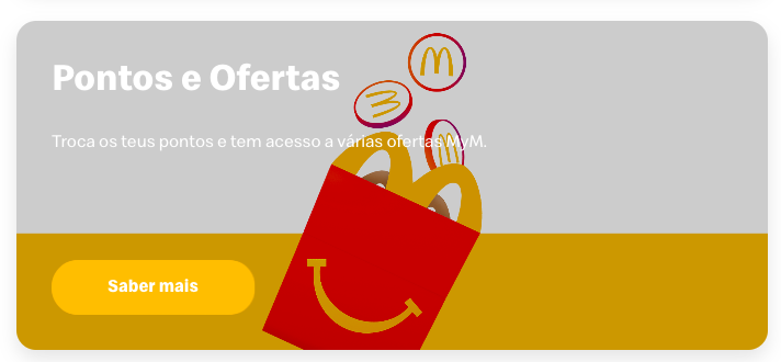 Utilizem sempre o vosso MyM para juntar pontos (1€=1 ponto) e trocá-los por produtos em qualquer restaurante McDonald’s.