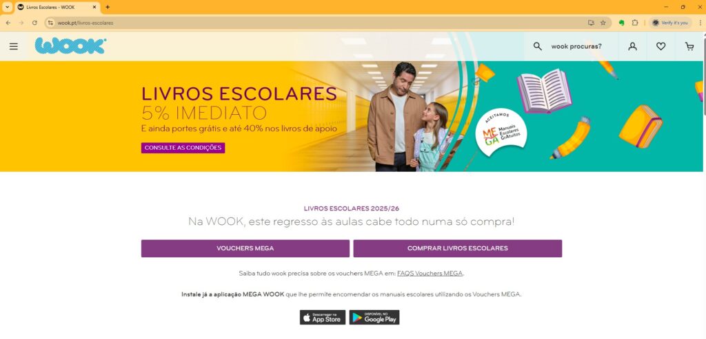 Como trocar os vouchers MEGA por manuais escolares gratuitos na WOOK