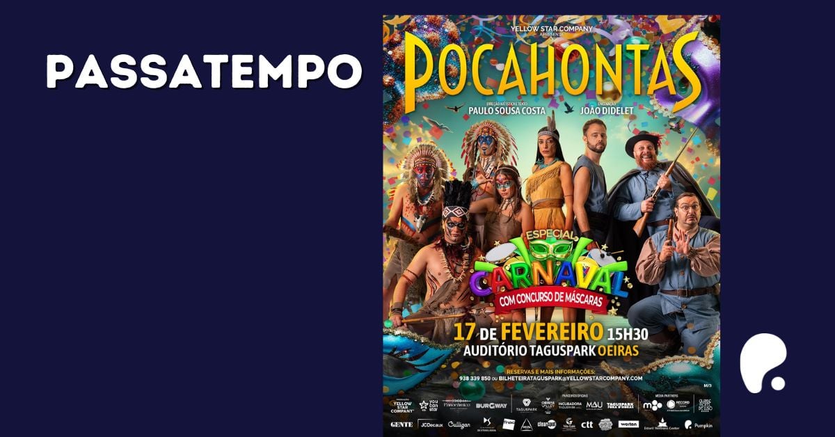 A Yellow Star Company apresenta o maravilhoso espetáculo musical Pocahontas especial de Carnaval e promete transformar o teatro numa verdadeira festa, com música, fantasia e um animado concurso de máscaras, dirigido a crianças e adultos.